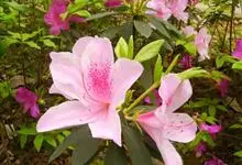 锦绣杜鹃是杜鹃花科、杜鹃花属植物。半常绿灌木,高1.5-2.5米;枝开展,淡灰褐色,被淡棕色糙伏毛。叶薄革质,椭圆状长圆形至椭圆状披针形或长圆状倒披针形,先端钝尖,基部楔形,边缘反卷,全缘,…全部>>
