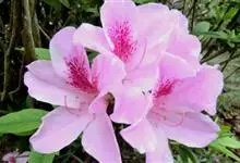 锦绣杜鹃是杜鹃花科、杜鹃花属植物。半常绿灌木,高1.5-2.5米;枝开展,淡灰褐色,被淡棕色糙伏毛。叶薄革质,椭圆状长圆形至椭圆状披针形或长圆状倒披针形,先端钝尖,基部楔形,边缘反卷,全缘,…全部>>