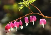 荷包牡丹 Fukuhara),是罂粟科荷包牡丹属的多年生草本植物,株高30-60厘米,具肉质根状茎;茎直立呈圆柱形;叶二回三出全裂,状似牡丹叶;总状花序顶生,基部为心形,花瓣紫红色至粉红色,稀白色,…全部>>