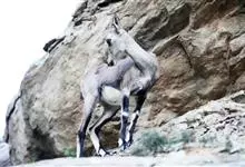 岩羊是偶蹄目牛科岩羊属哺乳动物。颜色与岩石相像,两性皆具角,雄羊角大而弯曲,角外表具不明显的横棱且体壮实,雌羊角短小;头较小,眼大,耳小,颏下无须;体背面为棕灰或石板灰色略有蓝色反光,…全部>>