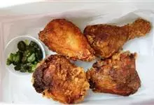 炸鸡腿是以笋鸡腿、鸡蛋、面粉、鸡肉为主要食材,植物油、料酒、盐、湿淀粉量、味精、葱、姜、椒盐为调料炸出来的一种食物。具有色泽金黄艳丽,鸡肉焦嫩适口的特点。全部>>