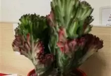 麒麟掌,是大戟科大戟属多年生植物。为金刚纂的带化变异变种。麒麟掌的株乳汁丰富;它的茎圆柱状,上部多分枝,绿色;叶互生,稀少,常生于嫩枝顶端脊上,倒卵形、倒卵状长圆形或匙形,顶端钝圆,具小凸尖,全缘,…全部>>