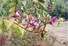 羊蹄甲,别名紫花羊蹄甲、玲甲花,是豆科羊蹄甲属的一种常绿乔木或灌木。树冠开展,枝桠低垂;树皮灰色至暗褐色,近光滑。枝幼时微被灰色短柔毛,后毛脱落;叶硬纸质,近圆形,基部浅心形,…全部>>