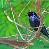 发冠卷尾是中型鸟类,体长28-35厘米。通体绒黑色缀蓝绿色金属光泽,额部具发丝状羽冠,外侧尾羽末端向上卷曲。栖息于海拔1500米以下的低山丘陵和山脚沟谷地带,多在常绿阔叶林、次生林或人工松林中活动。…全部>>