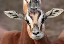 阿拉伯沙瞪羚:是偶蹄目、牛科、瞪羚属的食草动物。头尾长97厘米,身高约55-60厘米。雄性体重约为22千克,雌性性体重为18千克。雌雄都有犄角,雄性长达27厘米,雌性15厘米。体型较小。腿细长,…全部>>