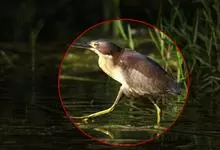 紫背苇鳽是鹭科、苇鳽属动物,为涉禽,体长约33厘米。头顶黑色,后头至尾上覆羽暗栗褐色;翅上覆羽橄榄黄色;下体浅棕黄色。多生活于水库和山脚边的稻田、芦苇丛、滩涂及沼泽草地,在西藏见于海拔2300米的农田,…全部>>