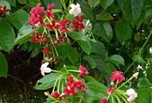 使君子 Jongkind)是使君子科、使君子属攀援灌木,叶对生,椭圆形,两面均被灰白色柔毛。穗状花序,倒挂下垂。花期夏秋。果有五棱,熟时黑色,种子白色。分布于印度、缅甸、菲律宾和中国。喜温润,深根性,…全部>>