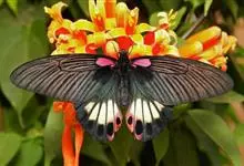 美凤蝶又名多型蓝凤蝶、大凤蝶,是鳞目凤蝶科凤蝶属动物。美凤蝶雄蝶无尾突,翅黑色,正面各翅室中部有深色条纹,分布蓝色鳞片,反面前后翅基部有红斑,后翅臀角有环状红斑。雌蝶具多型,前翅浅灰色,外缘和翅脉黑色,…全部>>