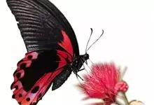 玉斑凤蝶Papilio helenus 别名白纹凤蝶,是凤蝶科凤蝶属美凤蝶亚属大型种类。雌雄同型;体翅皆黑色,后翅正面中室外有3个并列的白色斑,亚外缘有1列模糊的新月形红色斑,…全部>>