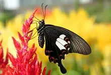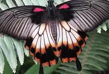 玉斑凤蝶Papilio helenus 别名白纹凤蝶,是凤蝶科凤蝶属美凤蝶亚属大型种类。雌雄同型;体翅皆黑色,后翅正面中室外有3个并列的白色斑,亚外缘有1列模糊的新月形红色斑,…全部>>