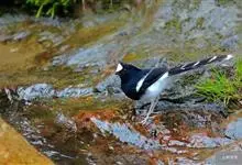 白额燕尾是雀形目鸫科燕尾属鸟类,又叫水鸦雀、白冠燕尾、黑背燕尾。前额至头顶具白斑,头余部、颈、背、喉及胸黑色,腰、腹部及尾下覆羽白色,两翼黑色且具白色翼斑;尾上覆羽黑色并具白色端斑,中央尾羽最短,…全部>>