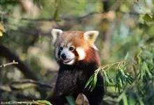 小熊猫:是小熊猫科、小熊猫属的一种动物。雌雄相似,不存在二态性。外形像猫,但较猫肥大,全身红褐色。圆脸,吻部较短,脸颊有白色斑纹。耳大,直立向前。四肢粗短,为黑褐色。尾长、较粗而蓬松,…全部>>