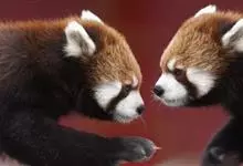 小熊猫:是小熊猫科、小熊猫属的一种动物。雌雄相似,不存在二态性。外形像猫,但较猫肥大,全身红褐色。圆脸,吻部较短,脸颊有白色斑纹。耳大,直立向前。四肢粗短,为黑褐色。尾长、较粗而蓬松,…全部>>