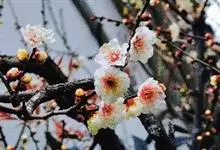 宫粉梅 Rehd.)是蔷薇科、李属植物,梅花品系中真梅系直枝梅类宫粉型,其花复瓣至重瓣,呈或深或浅的红色。落叶乔木,高达10米。树干褐紫色,有纵驳纹,小枝细而无毛,多为绿色。叶广卵形至卵形,…全部>>
