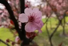 美人梅是蔷薇科李属的落叶小乔木。叶互生,呈广卵形或卵形,紫红色;花呈淡紫红色,半重瓣或重瓣,花叶同放,繁密有香味;果实呈球形,呈鲜红色;花期3-4月;果期5-6月。美人梅原产于美国,…全部>>