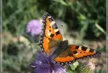 荨麻蛱蝶:共有10个亚种。翅展4.5-5厘米。翅面黄褐或红褐色,斑纹黑或黑褐色,前翅外缘齿状,翅端呈镰形,外缘有一黑褐色宽带,顶角内侧有一白斑,中室内外及其下方各有1黑色斑纹。…全部>>