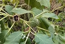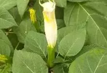 曼陀罗,茄科曼陀罗属一年生大型草本植物,全株光滑。有臭气;叶呈广卯形,边缘具不规则波状浅齿裂;花单生于枝杖间或叶腋,直立,有短梗;花萼是筒状裂片三角形,颜色为白色或淡紫色;果实为蒴果卵状,…全部>>