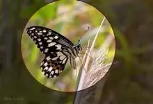 无尾凤蝶,Papilio demoleus ,鳞翅目凤蝶科凤蝶属的一个物种。展翅宽70~80mm。翅膀黑色,具不规则的米黄色斑;下翅有明显橙色斑,无尾状突起,无近似种。春至初夏最多,…全部>>