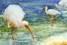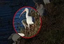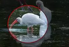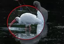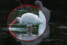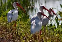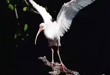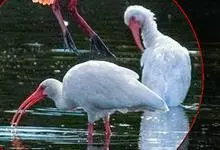 美洲白鹮:是一种大型涉禽。体长56-58厘米,体重750-1050克。头和颈裸出,喙很长,向下弯曲。飞行时颈和脚伸直,交替地拍动翅膀和滑翔。成年美洲白鹮,除了嘴和腿部是橘红色,翅膀末端有黑色外,…全部>>