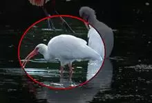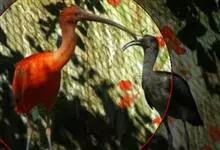 美洲白鹮:是一种大型涉禽。体长56-58厘米,体重750-1050克。头和颈裸出,喙很长,向下弯曲。飞行时颈和脚伸直,交替地拍动翅膀和滑翔。成年美洲白鹮,除了嘴和腿部是橘红色,翅膀末端有黑色外,…全部>>