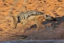 亚洲胡狼是金豺的指名亚种,体型中等、匀称,四肢修长,趾行性,利于快速奔跑。头腭尖形,颜面部长,鼻端突出,耳尖且直立,嗅觉灵敏,听觉发达。犬齿及裂齿发达;上臼齿具明显齿尖,…全部>>