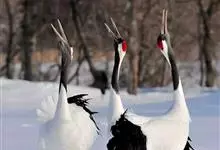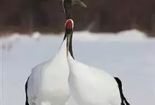 丹顶鹤:是鹤科、鹤属的一种大型涉禽,体长120-160厘米。颈、脚较长,通体大多白色,头顶鲜红色,喉和颈黑色,耳至头枕白色,脚黑色,站立时颈、尾部飞羽和脚黑色,头顶红色,…全部>>