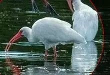 美洲白鹮:是一种大型涉禽。体长56-58厘米,体重750-1050克。头和颈裸出,喙很长,向下弯曲。飞行时颈和脚伸直,交替地拍动翅膀和滑翔。成年美洲白鹮,除了嘴和腿部是橘红色,翅膀末端有黑色外,…全部>>