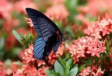 美凤蝶又名多型蓝凤蝶、大凤蝶,是鳞目凤蝶科凤蝶属动物。美凤蝶雄蝶无尾突,翅黑色,正面各翅室中部有深色条纹,分布蓝色鳞片,反面前后翅基部有红斑,后翅臀角有环状红斑。雌蝶具多型,前翅浅灰色,外缘和翅脉黑色,…全部>>