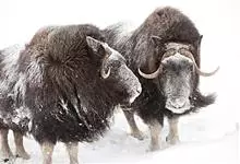 麝牛,是偶蹄目牛科麝牛属哺乳动物。麝牛体型大,但低矮粗壮,头大,吻部宽,眼小;雌雄均具角,四肢短粗,蹄宽大;毛被厚,极耐寒,尾短。雄麝牛在发情时会散发出一种类似麝香的气味,又称麝香牛。…全部>>