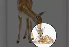 狍是鹿科、狍属的一种动物。体长约1.2米,体重约30千克,有着细长颈部及大眼睛,大耳朵。无獠牙,后肢略长于前肢,尾短,雄狍有角,雌性无角,雄性长角只分三个叉。狍身草黄色,尾根下有白毛,尾巴仅2-3厘米。…全部>>
