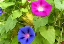五爪金龙 Sweet),旋花科番薯属多年生缠绕草本植物。茎细长,有细棱;叶片为掌状;花冠紫红色、紫色或淡红色、偶有白色,漏斗状;蒴果近球形。花期5~12月。五爪金龙的叶子类似掌状,有5至7个裂痕,…全部>>