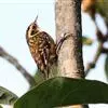 旋木雀是旋木雀科旋木雀属的一种动物。小型鸟类,体长12~15厘米,平均重10克。嘴长而下曲,上体棕褐色具白色纵纹,腰和尾上覆羽红棕色,尾黑褐色,外翈羽缘淡棕色,翅黑褐色,翅上覆羽羽端棕白色,…全部>>