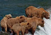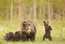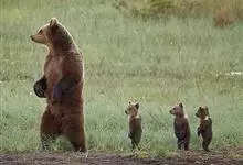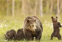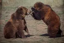 棕熊是熊科熊属哺乳动物。体形健硕,肩背隆起,身后长有一条短尾。毛色多为棕褐色或棕黄色;老年呈银灰色;幼年为棕黑色。野生条件下寿命为20—30年。棕熊分布广泛,主要分布在欧亚大陆和北美,…全部>>