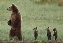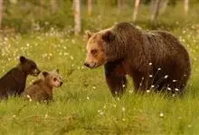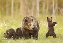 棕熊是熊科熊属哺乳动物。体形健硕,肩背隆起,身后长有一条短尾。毛色多为棕褐色或棕黄色;老年呈银灰色;幼年为棕黑色。野生条件下寿命为20—30年。棕熊分布广泛,主要分布在欧亚大陆和北美,…全部>>