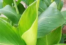 金脉美人蕉叶片淡黄色,叶脉绿化,叶缘具红边,全缘,大花美人蕉之变种全部>>
