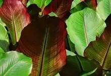 金脉美人蕉叶片淡黄色,叶脉绿化,叶缘具红边,全缘,大花美人蕉之变种全部>>