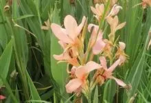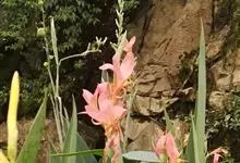 粉美人蕉:是一种球根草本植物。根茎延长,株高1.5-2米;茎绿色。叶片披针形;总状花序疏花,单生或分叉,稍高出叶上;苞片圆形,褐色,花黄色,无斑点;有多种园艺栽培品种,颜色从粉、橙红色及具带红色斑点…全部>>