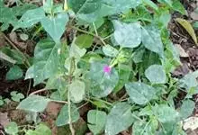 即紫茉莉,英文名:Four-o'clock,Marvel of Peru,为紫茉莉科、紫茉莉属多年生草本植物,一年生栽培。株高50~80cm。根粗壮,茎多分枝而散生。叶对生,卵形或心脏形。花数朵簇生…全部>>