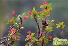 虎刺梅:别称铁海棠,是蔓生灌木植物。茎多分枝,长60-100厘米,直径5-10毫米,具纵棱,密生硬而尖的锥状刺,刺长1-1.5厘米,直径0.5-1.0 毫米,常呈3-5列排列于棱脊上,呈旋转。叶互生…全部>>
