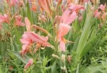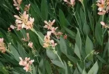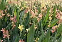 粉美人蕉:是一种球根草本植物。根茎延长,株高1.5-2米;茎绿色。叶片披针形;总状花序疏花,单生或分叉,稍高出叶上;苞片圆形,褐色,花黄色,无斑点;有多种园艺栽培品种,颜色从粉、橙红色及具带红色斑点…全部>>
