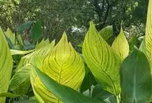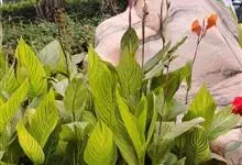 金脉美人蕉叶片淡黄色,叶脉绿化,叶缘具红边,全缘,大花美人蕉之变种全部>>