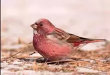 北朱雀,是燕雀科朱雀属鸟类。雄鸟额和头顶前部珠白色具窄的粉红色羽缘,在头顶前部形成极明显的银白色鳞状斑,头顶后部、枕、头侧和后颈粉红色。背、肩灰褐色,腰和尾上覆羽为鲜亮的粉红色无黑褐色纵纹,腹中央白色。…全部>>
