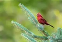 普通朱雀是雀形目雀科朱雀属鸟类,又名红朱雀、马料、青麻料。雄鸟上体红色,下体淡红色;头部、喉部、胸部及腰部亮红色;背部褐色染红色;两翼及尾黑褐色,羽缘染红色。雌鸟上体橄榄褐色,下体近白色,…全部>>