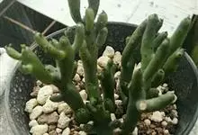 筒叶花月,是景天科青锁龙属的多年生草本植物。植株多分株,灌木状,茎较粗壮,圆柱形,表皮灰褐色;叶片肉质,互生,呈圆筒状,簇生于茎或分枝顶端,叶端呈斜截形,截面为椭圆形;花呈星状,淡白色;花期秋季。…全部>>