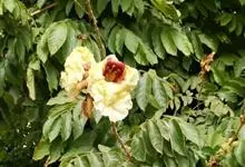 十字架树是紫葳科、葫芦树属小灌木,高3-6米。叶簇生于小枝上;小叶长倒披针形至倒匙形,几无柄,叶柄具阔翅。花1-2朵生于小枝或老茎上;花梗长约1厘米。花萼淡紫色。花冠褐色,具有紫褐色脉纹,近钟状,具…全部>>