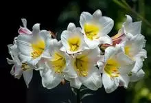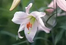 麝香百合:在中国台湾亦称铁炮百合。鳞茎球形或近球形,高2.5-5厘米;鳞片白色。茎高45-90厘米,绿色,基部为淡红色。叶散生,披针形或矩圆状披针形,两面无毛。花单生或2-3朵;花喇叭形,白色,筒外…全部>>