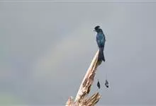 大盘尾:是雀形目卷尾科的鸟类,共有13个亚种。外形和小盘尾相似,但体型较大,体长约33厘米,加上延长的尾羽,可达66厘米。通体黑色,额部羽簇长而卷曲,形成直立向上的羽冠。尾叉状,…全部>>