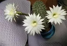 仙人球花 仙人掌科,仙人球属。植株单生或成丛。幼株球形,老株长成圆筒状,高可达75厘米,直径12-15厘米。球体暗绿色,具棱11-12。刺锥状,黑色,长1-1.5厘米。花着生于球体侧方,大型嗽喇叭状…全部>>