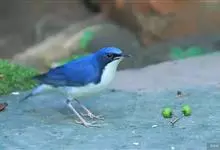 蓝歌鸲是雀形目鸫科歌鸲属鸟类。雄鸟头至整个上体普蓝色,眼先、头侧和颊部近黑色,耳羽和颈侧黑蓝色,颊后黑纹经颈侧延伸至胸侧,在上体的蓝色区域和下体的白色区域间形成鲜明的间隔;飞羽和尾羽黑褐色,…全部>>