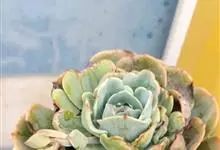 蓝石莲是景天科、拟石莲花属的多肉植物。茎部粗壮,成熟植株茎部木质化。叶片莲座型密集排列,株径不会很大,叶片相对较薄,常年绿色,表面布有白色粉末,中部凹陷,呈倒水滴状。叶尖较尖,叶缘光滑无褶皱,…全部>>